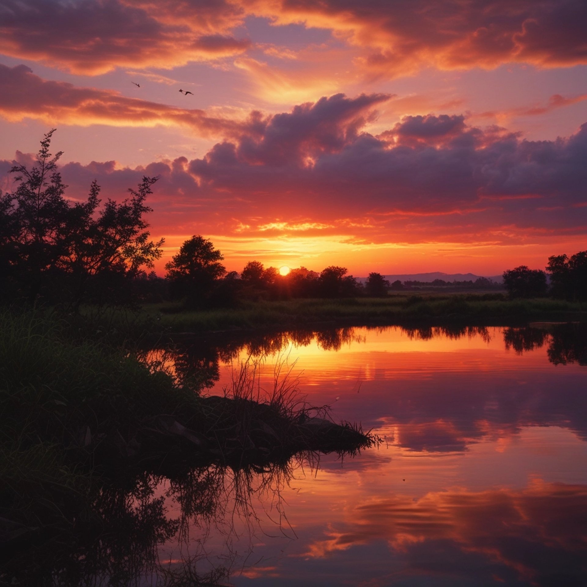 Sunset spills its colors wide,